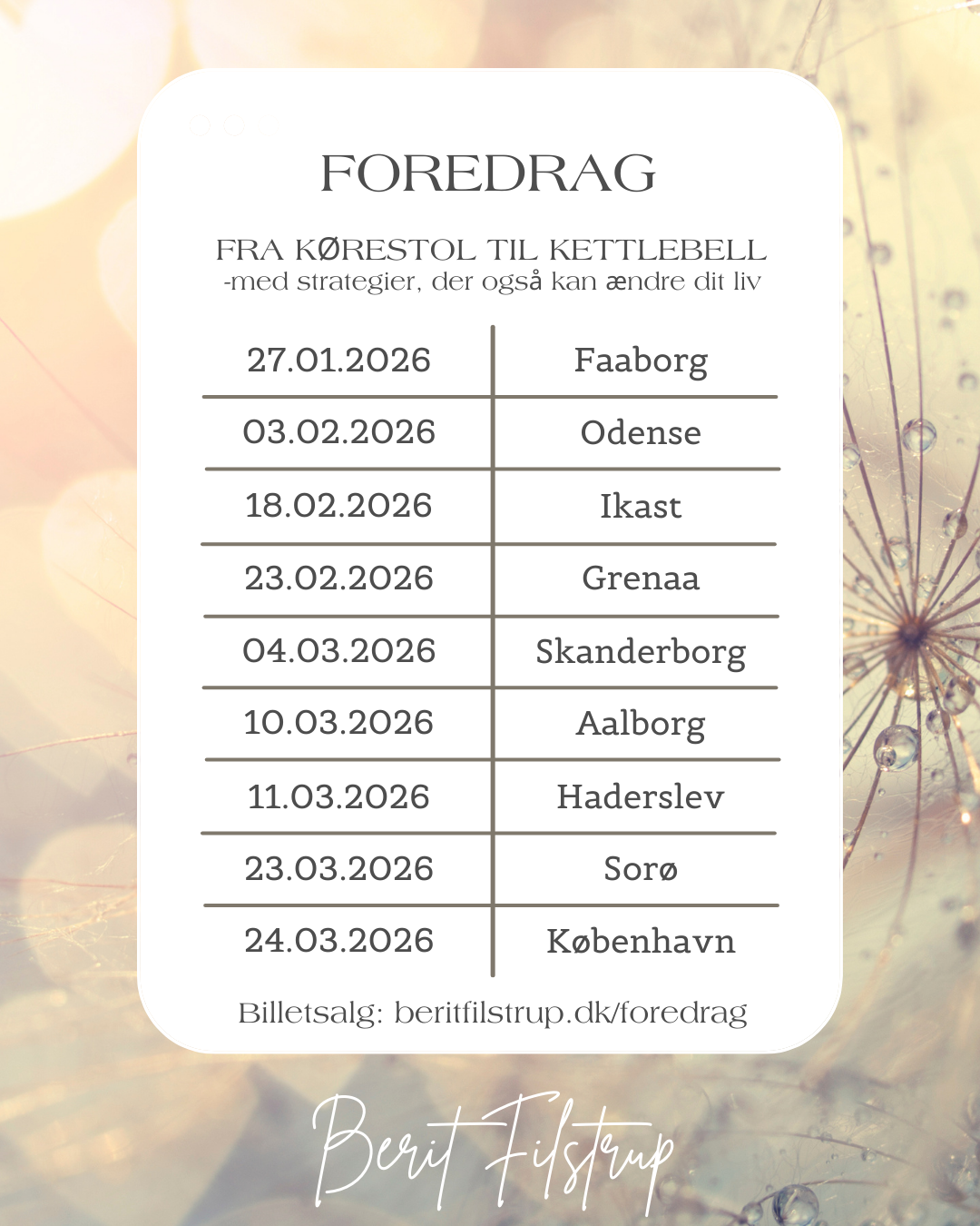 Mød mig rundt i Danmark i 2026 – og tag det første skridt mod et stærkere, gladere liv.